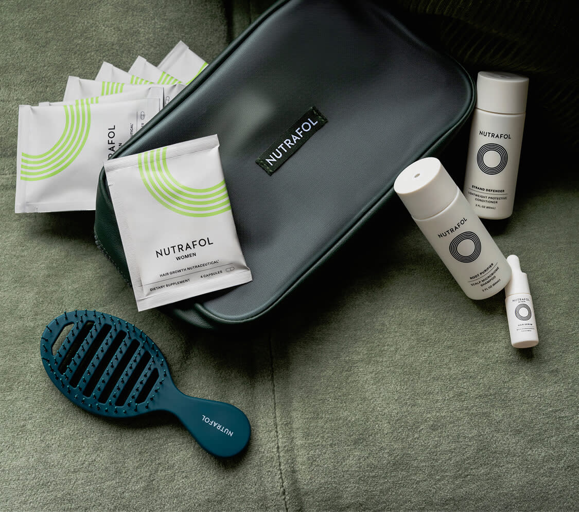 Please note: We do not recommend Nutrafol to anyone under the age of 18. Also, while we have no reason to believe it's harmful, there have not been enough studies for us to say Nutrafol is suitable during pregnancy—so we recommend skipping it while pregnant or trying to conceive and sticking with Nutrafol Postpartum while breastfeeding. If you have a medical condition, or are taking medications (especially anticoagulant and blood-thinning drugs), please consult with your physician before taking Nutrafol.