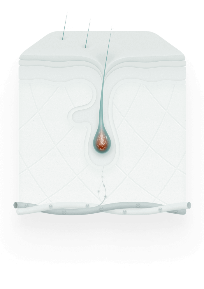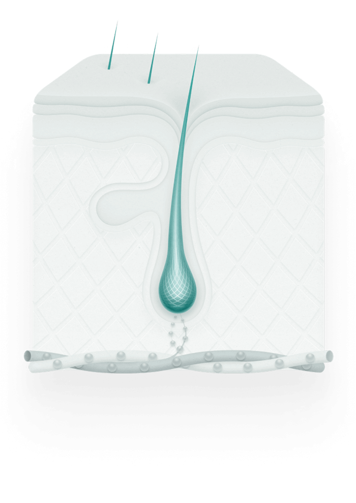 Our advanced formulas address signs of hair thinning from both the inside and out. The drug-free ingredients in our clinically tested Nutraceuticals work from within to target 6 root causes that can trigger hair thinning—while the Hair Serum visibly reduces hair breakage. The result? Visibly thicker, stronger-feeling hair.